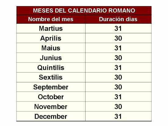 Los nombres que recibieron los meses, datan del siglo VII a.C. de un calendario que duraba 304 días y que consideraba únicamente 10 meses, ya que se iniciaba en Marzo, y es por esa razón que Diciembre, al ser el décimo mes, recibió este nombre. Posteriormente se adicionaron los meses de Enero y Febrero.