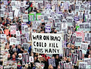 Aproximadamente se contó con más de diez millones de personas que se reunieron con este mismo fin y bajo la principal leyenda “Stop the war” que tuvo su conferencia internacional el día 11 de febrero, sin embargo, existieron muchos otros lemas entre los que encontramos por ejemplo, en Gran Bretaña se usaba también el “No en nuestro nombre, Señor Blair” o “Juntos podemos cambiar el rumbo de las cosas y salvar a mucha gente en Irak”; en Madrid se leían pancartas con el lema “Parad la guerra”, “No a la ocupación de Irak y Afganistán”, “No mas sangre por petróleo”; en Puerto Rico existió una página Web para convocar a los ciudadanos y unirse expresando “United for peace and justice”; en fin, existieron diversas exclamaciones, empero, tal vez la más recordada fue “Bush, Blair, Aznar: ASESINOS”