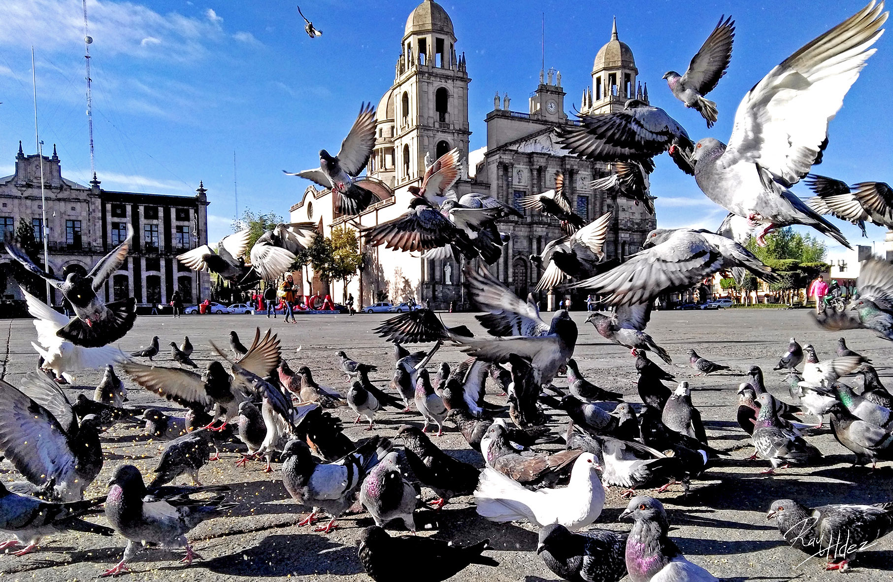 | En #FotoAIntelectual vemos un espectacular y colorido despliegue de palomas urbanas, cuando las alimentan por las mañanas. #RaymundoDHernandez #Palomas #Foto #Urbano |