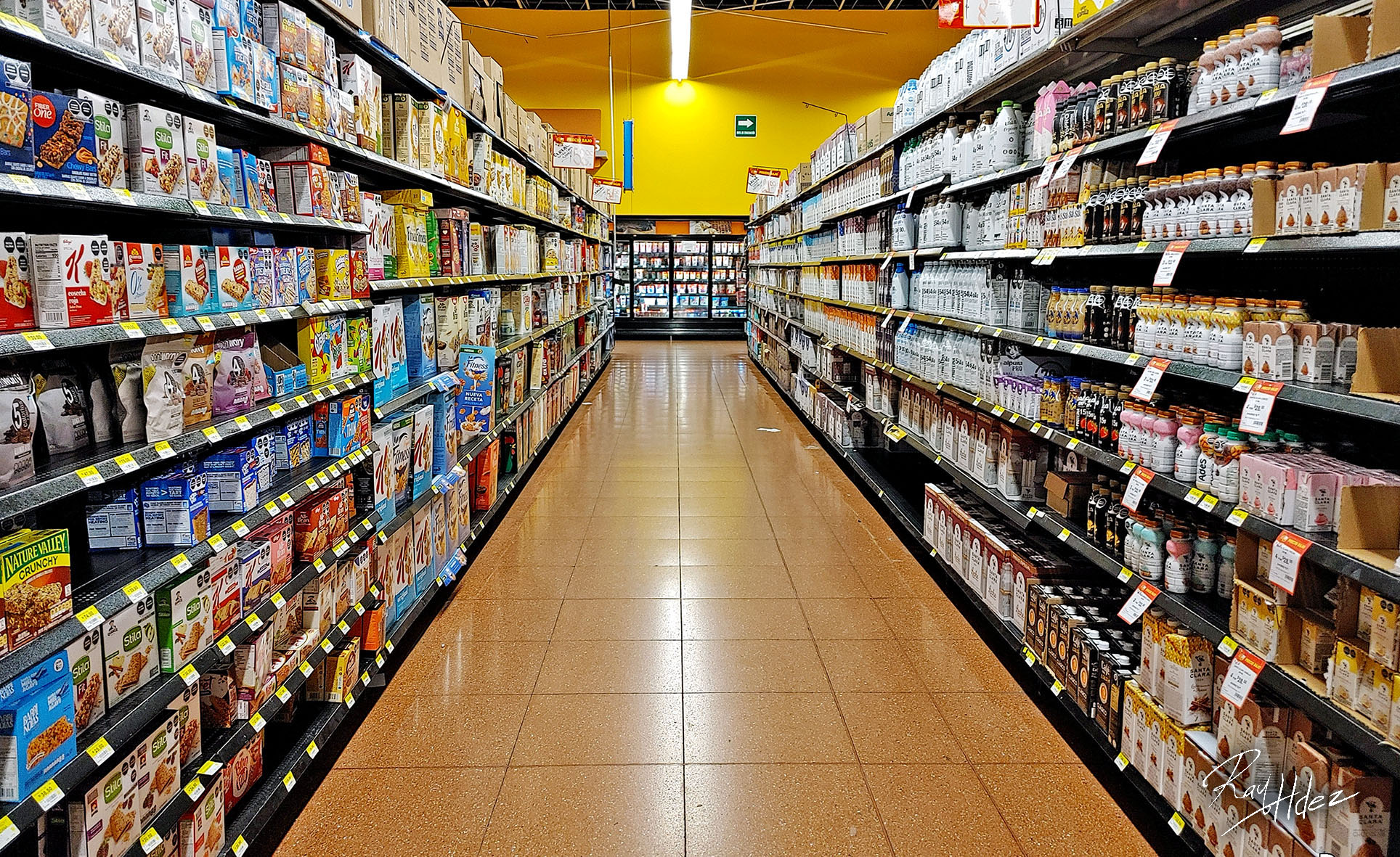 | En #FotoAIntelectual les comparto una simple pero sensacional foto del pasillo de un supermercado con los estantes llenos y ausencia de personas. #RaymundoDHernandez #Supermercado #Pasillo #Foto En el supermercado hay tantos elementos visuales dignos de ser fotografiados: las latas, los botes, las cajas, las bolsas y todas las mercancías exhibidas en serie son excelentes objetos fotográficos. Alguna vez una fotografía de unos estantes de supermercado fue la más cara del mundo. Hay que tener cuidado al momento de buscar los mejores ángulos o los mejores objetos a fotografiar porque no en todos los centros comerciales dejan tomar fotos. |