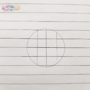 - Divide el círculo por la mitad. Vamos a dividir tanto horizontal como verticalmente para empezar a seccionar.