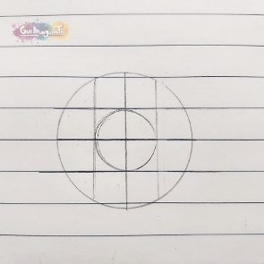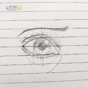 - Traza un círculo interno. Los tercios nos ayudarán a colocar el círculo en la mitad del espacio, este círculo será el iris del ojo.
