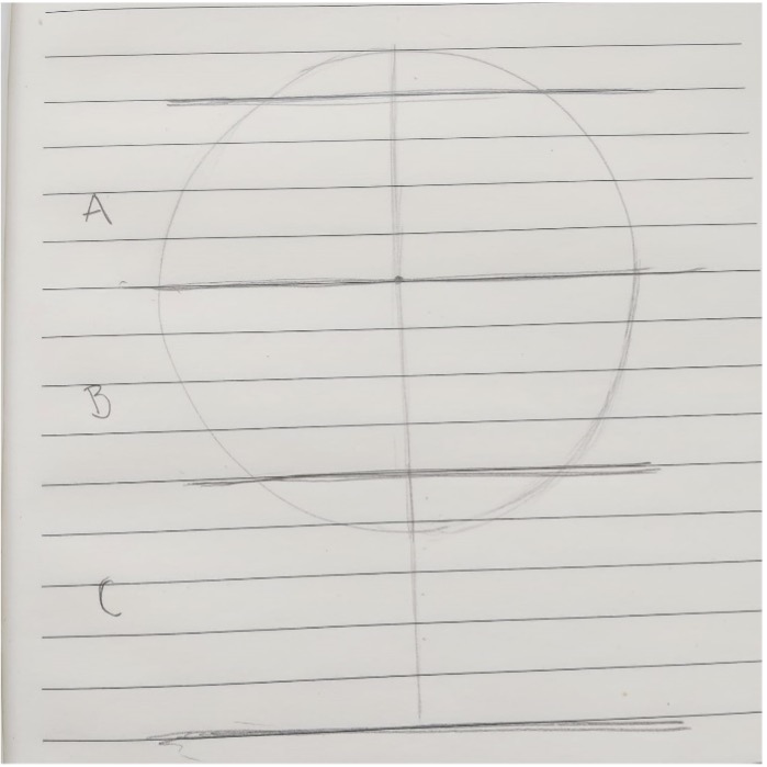 - Sección C. Ahora vamos a dibujar otra línea horizontal, pero esta vez afuera del círculo y en seguida de la sección B. Esta sección también deberá tener el mismo tamaño, aunque ustedes lo irán adecuando a sus necesidades.